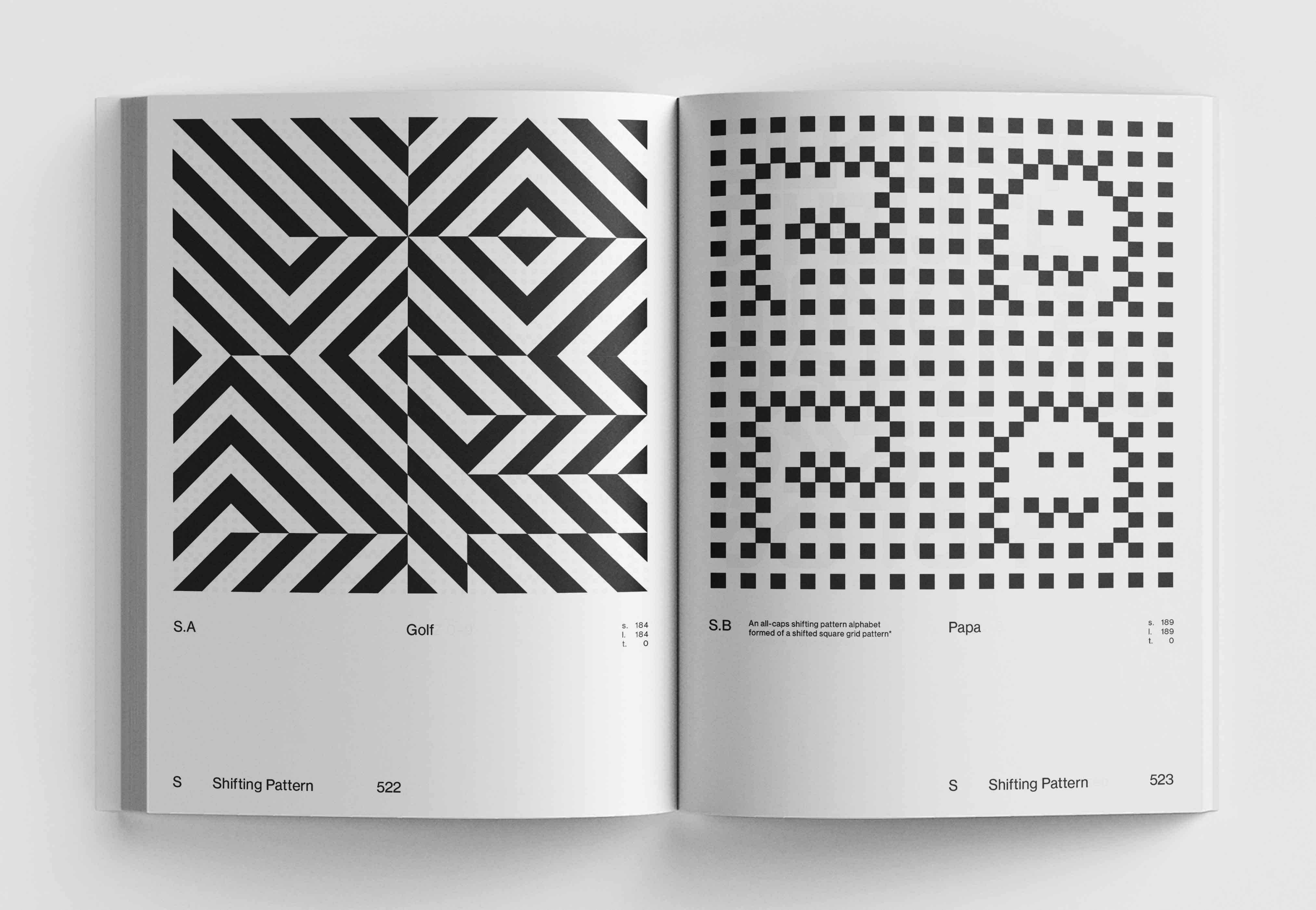 Cottier sets up the logical systems (each named using an Abecedarium of chapter titles - Alphanumeric, Bisect, Cursive, Dimensional, Geometry, Horizontals, etc.) and each typeface almost forms and designs itself from the preset parameters. The complexity of each system increases throughout the book and pushes legibility to the edge and over ‘… the alphabet always remaining remarkably impervious,’ as Hamish Muir notes in his foreword. Reading, and slowly understanding, the process and parameters for each system simply adds to the visual pleasure.