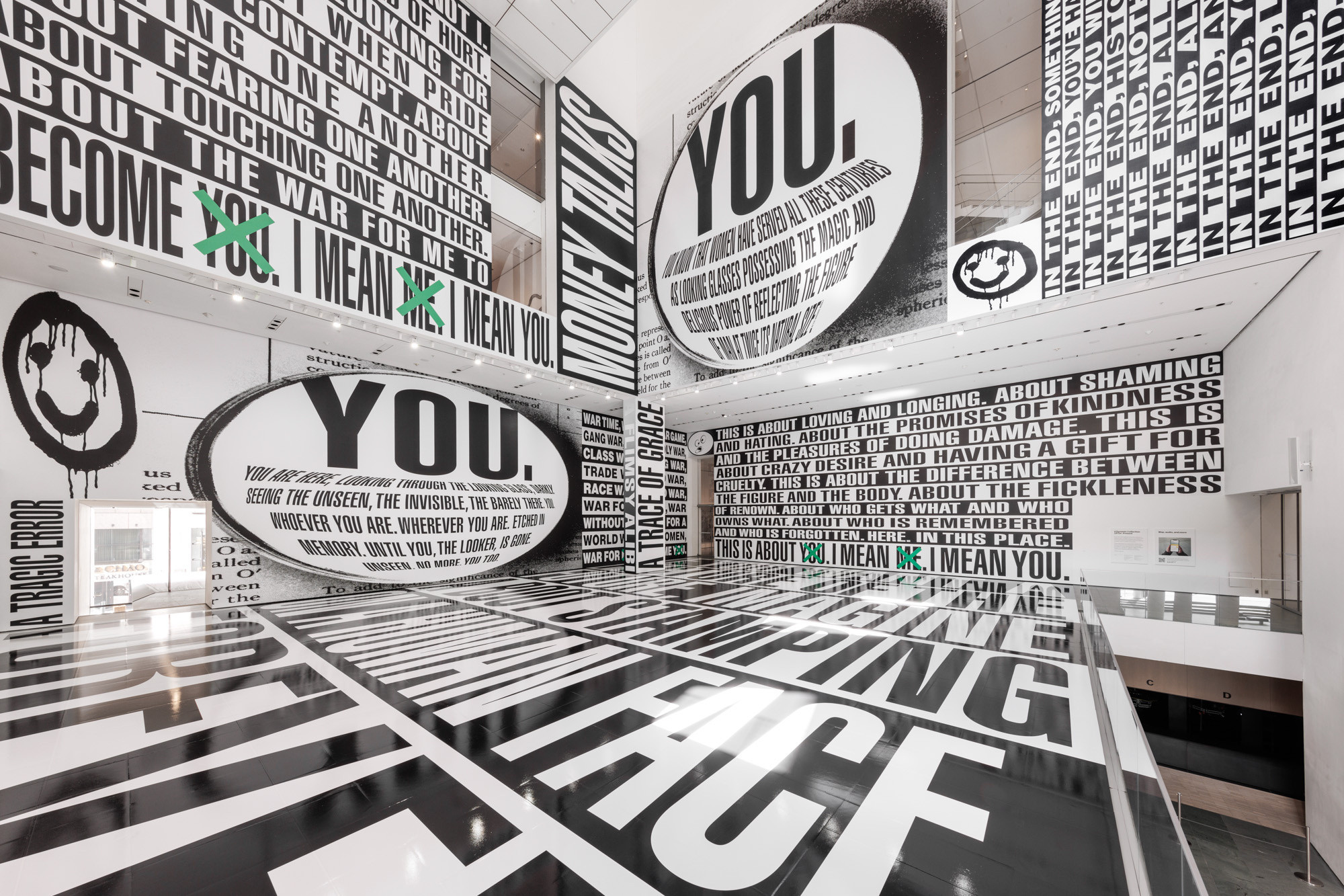Above: Barbara Kruger, Untitled (Questions), 1990/2018, on view October 20, 2018–November 2020 at The Geffen Contemporary at MOCA, photo by Elon Schoenholz.