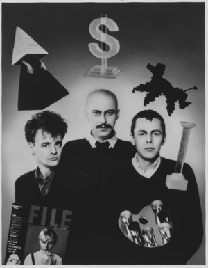Above. Yorke, Donwood and associate with work. Photo: Julian Broad, courtesy Tin Man Art.